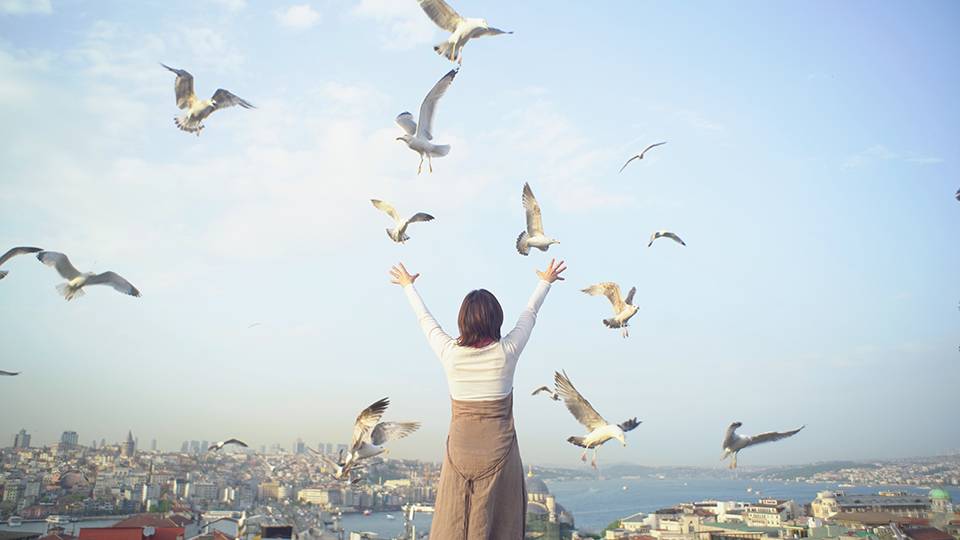 すると、カモメが何十羽とバサバサー!と寄ってきた。