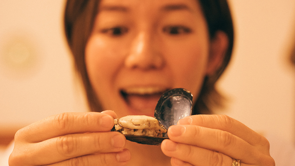 私たちは家に持ち帰り、お酒でもう一度蒸し直し、醤油をひとかけ加えてみた。